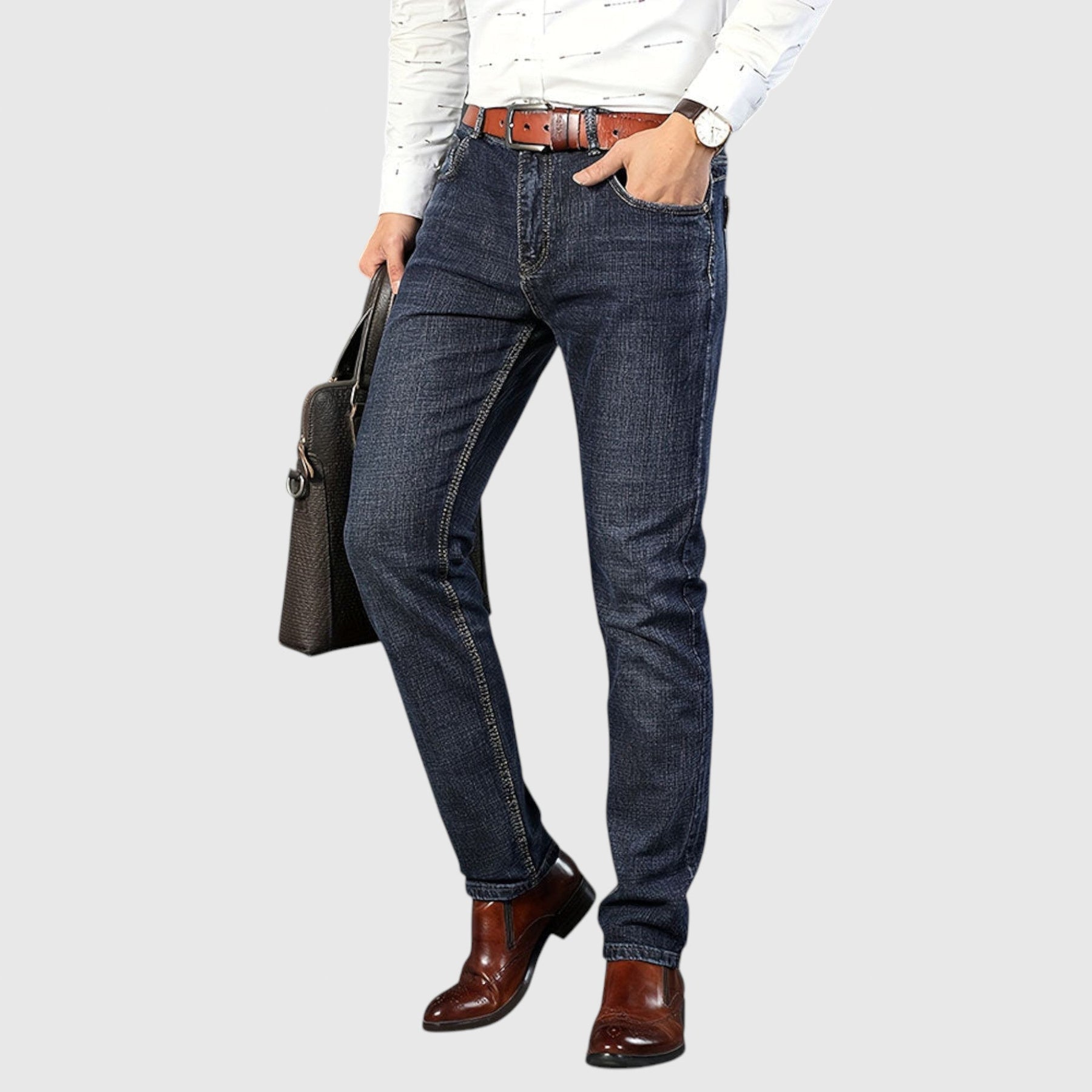 Džíny Milan Denim jsou určeny pro muže, kteří si cení robustní spolehlivosti s moderním nádechem. Vyrobeny z prvotřídní džínoviny, nabízejí strukturovaný, ale pohodlný střih - perfektní pro každodenní nošení, neformální procházky nebo pro kombinaci s elegantní košilí.
